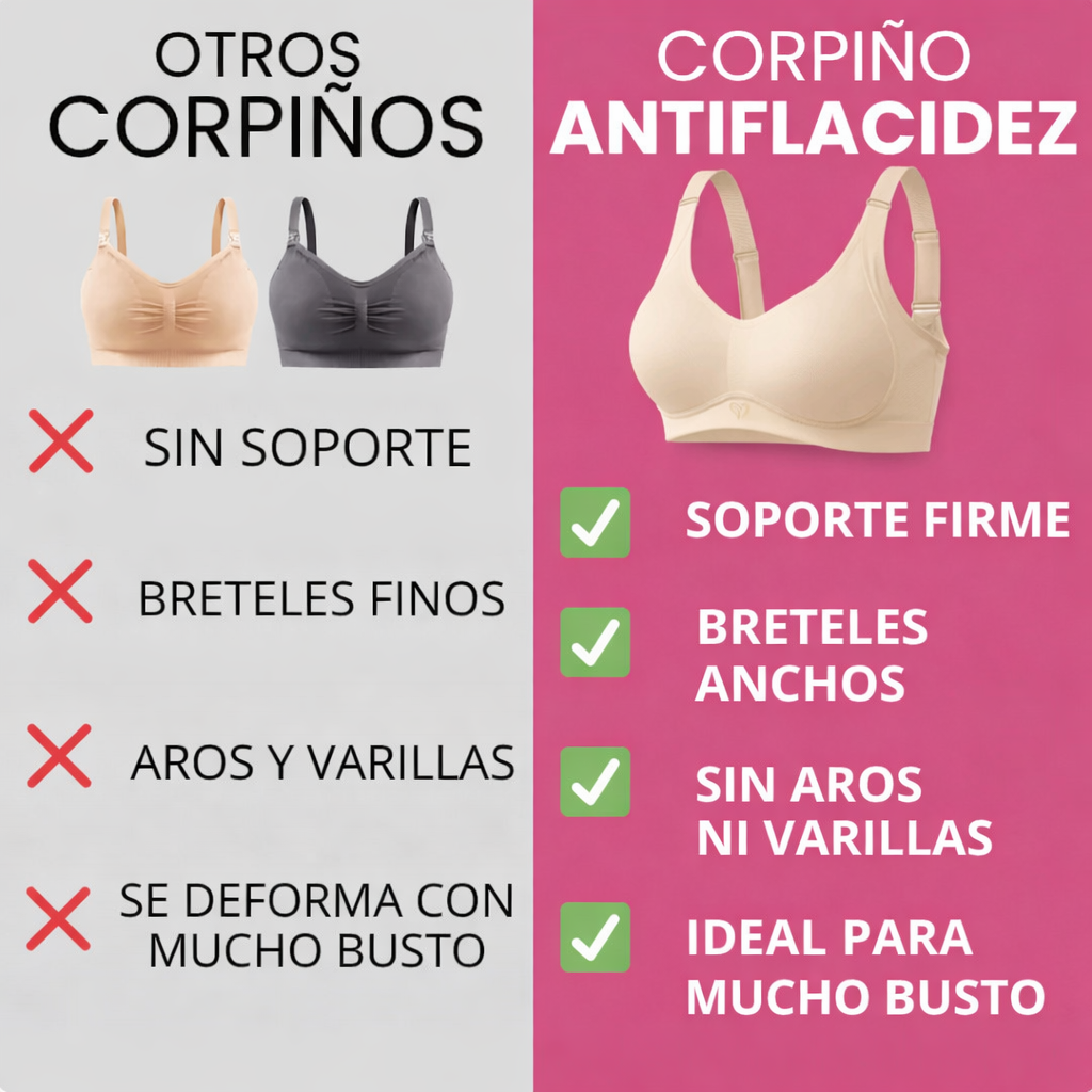 ✔ Sostiene sin aros · ✔ Acompaña la flacidez