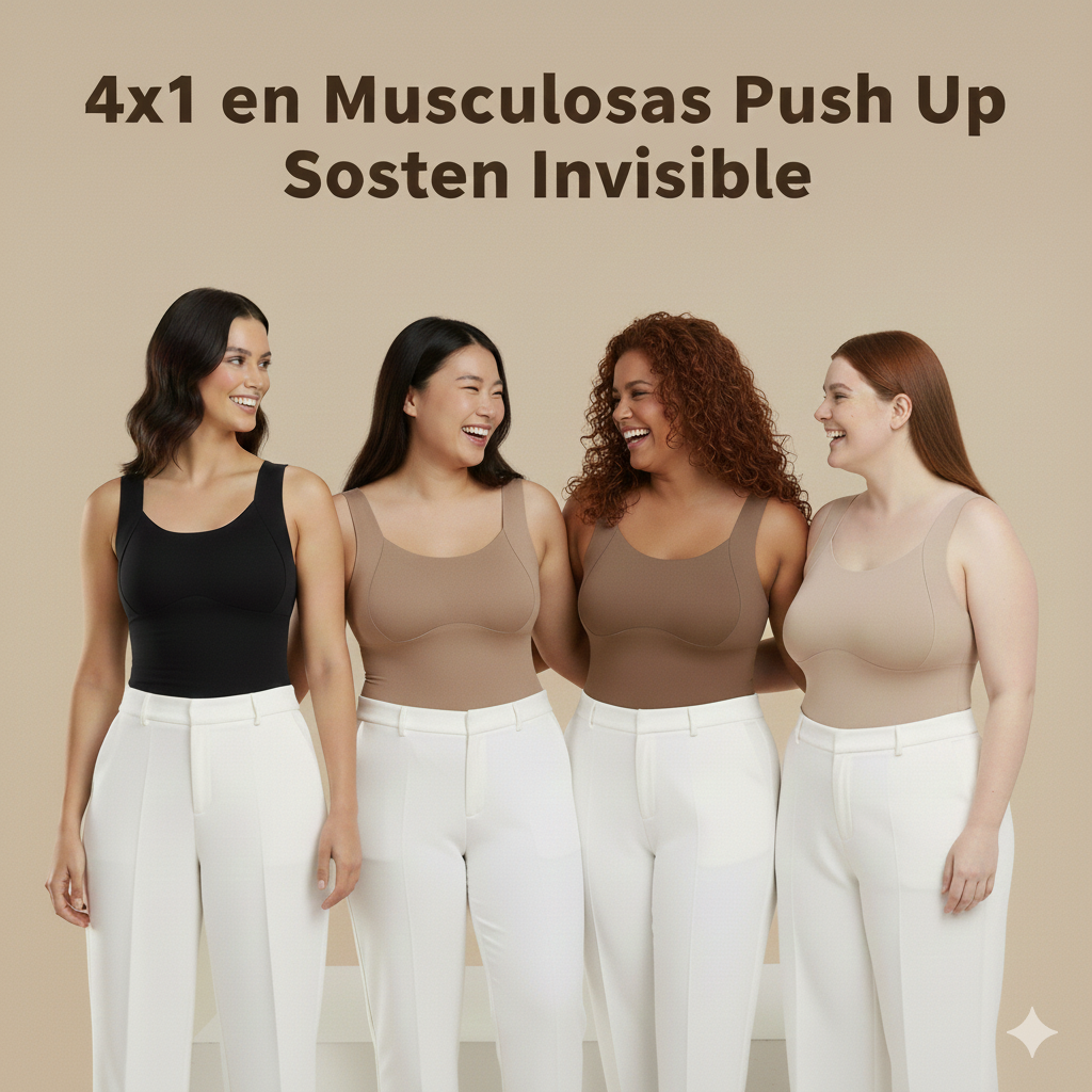 No es “otra musculosa más”. Es una pieza 2-en-1 con sostén interno incorporado pensada para: simplificar tu look, darte seguridad y dejarte un acabado prolijo sin esfuerzo.